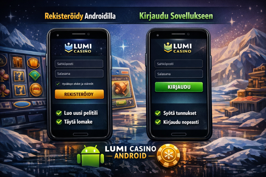 Lumi Casino Android -sovelluksessa rekisteröityminen ja kirjautuminen on rakennettu mobiilikäyttö edellä. Prosessi on selkeä, nopea ja suunniteltu niin, että pelaaja pääsee peleihin mahdollisimman vähillä vaiheilla suoraan Android-laitteella.