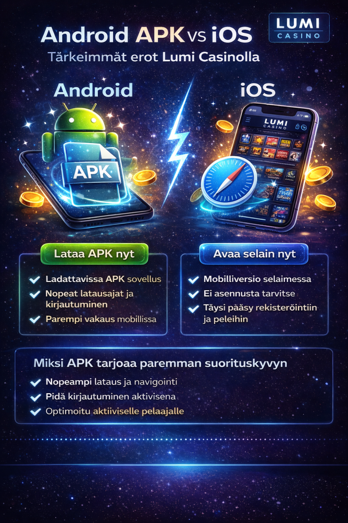 Android APK vs iOS – tärkeimmät erot Lumi Casinolla