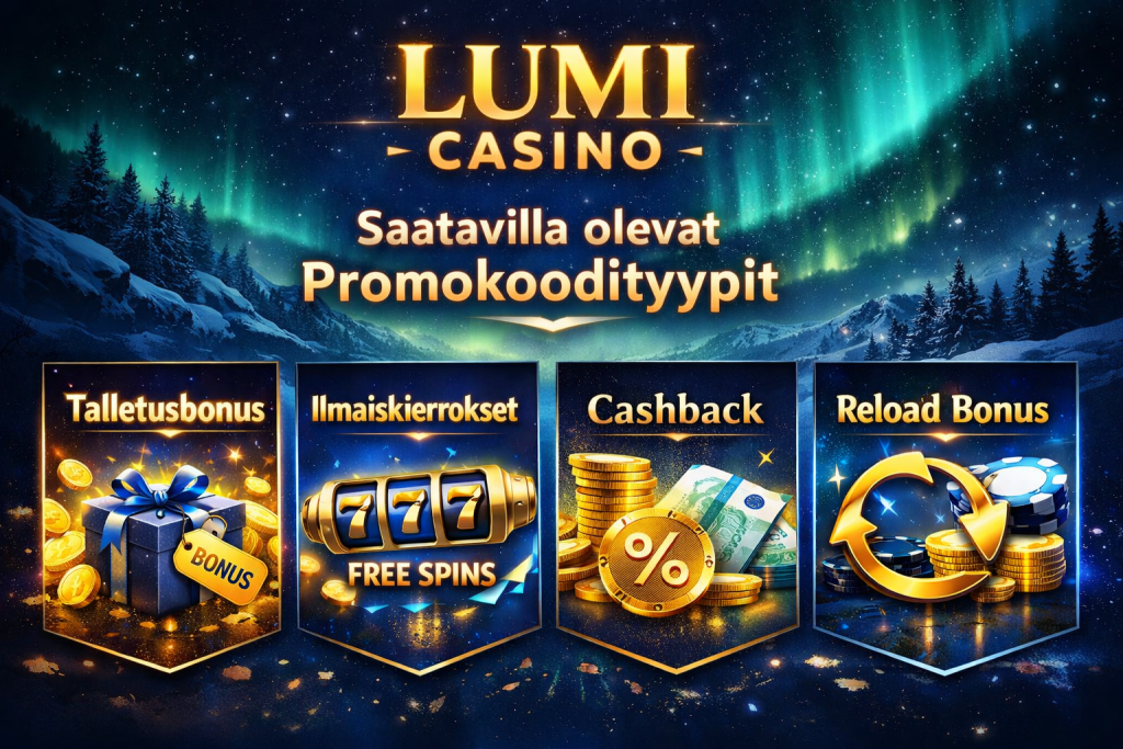 Talletusbonuskoodit ovat yleisimpiä Lumi Casinolla käytettäviä promokoodeja. Ne tarjoavat pelaajalle lisäbonuksen ensimmäisen tai myöhempien talletusten yhteydessä. Bonusprosentti ja enimmäissumma voivat vaihdella kampanjan mukaan, ja niihin liittyy yleensä kierrätysvaatimus ennen kotiutusta.
