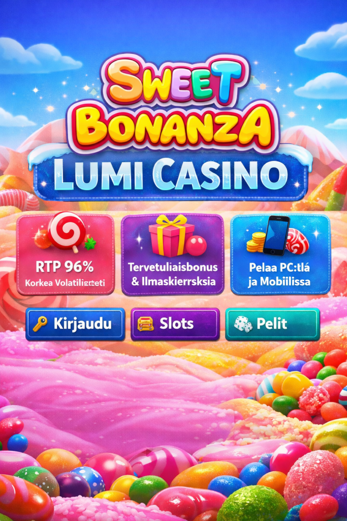 Aktivoi bonus Lumi Casino -tilillä ja pelaa Sweet Bonanzaa pidempään samalla pelikassalla. Tarkista aina ehdot ennen pelaamista.